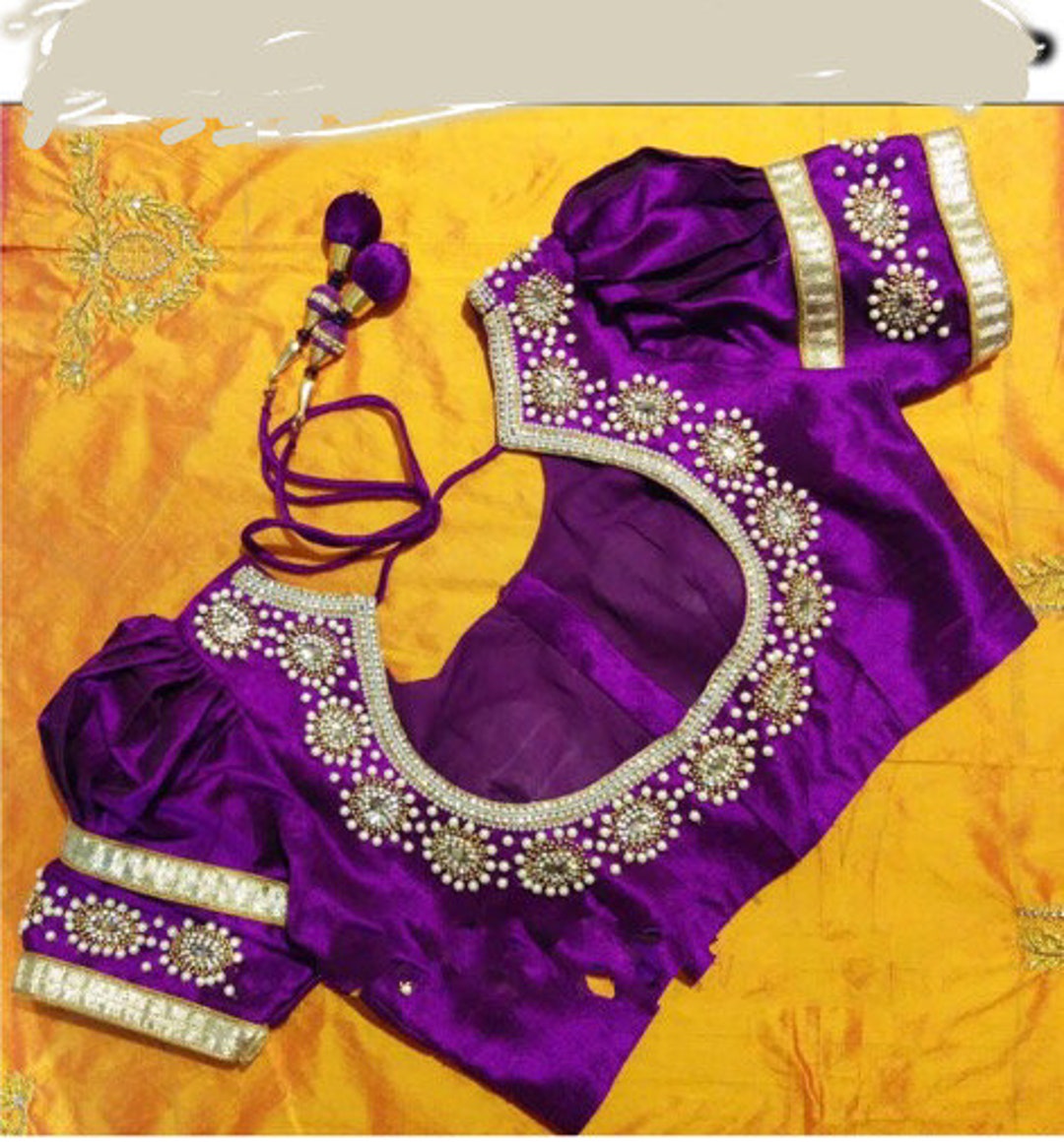 Purple Color Puff Sleeves Blouse With Pearls And Kundan Work Etsy Ireland